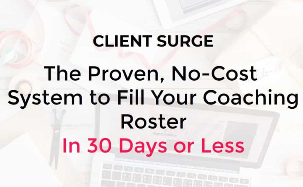 If you're a coach and you need a simple, repeatable, low-tech, no-cost system to consistently fill your coaching program or client roster, I hope you'll join me for an 8-week Client Surge adventure.